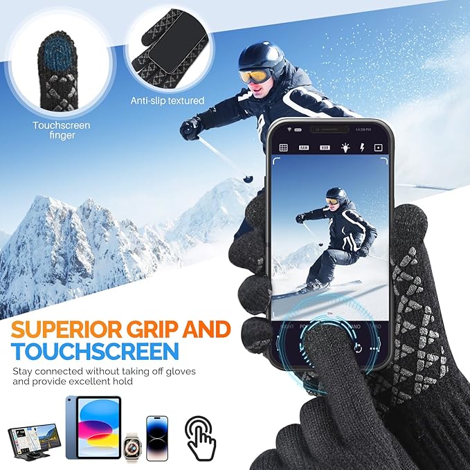 - Touchscreen-Compatible Fingertips--Stay connected in cold weather without removing your gloves. The touchscreen-compatible fingertips allow you to easily use your smartphone, tablet, or other devices, ensuring you can browse or take photos while keeping your hands warm and protected.