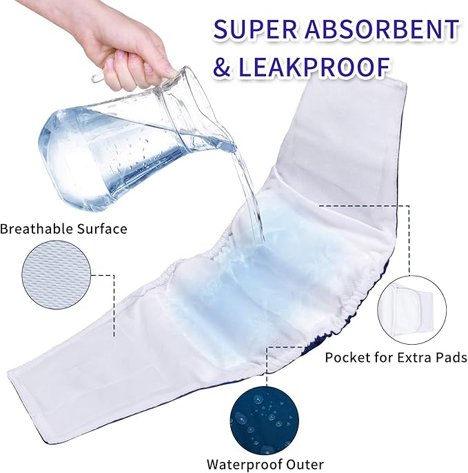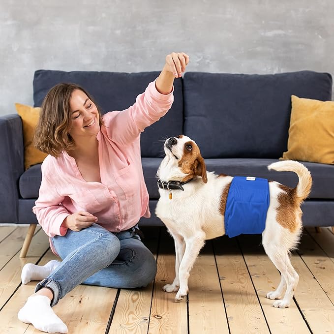 - Easy to wear- Hook & Loop closures are quick and easy to secure and won't stick to your pet's fur. These soft doggy diapers help your pet keep clean and dry between walks. Elastic edges provide extra fixed and snug fit around the waist, belly bands for male dogs will not slip off no matter how much wriggling and moving. With attractive and cute designs, your dog is fashion enough when you go out taking a happy time.