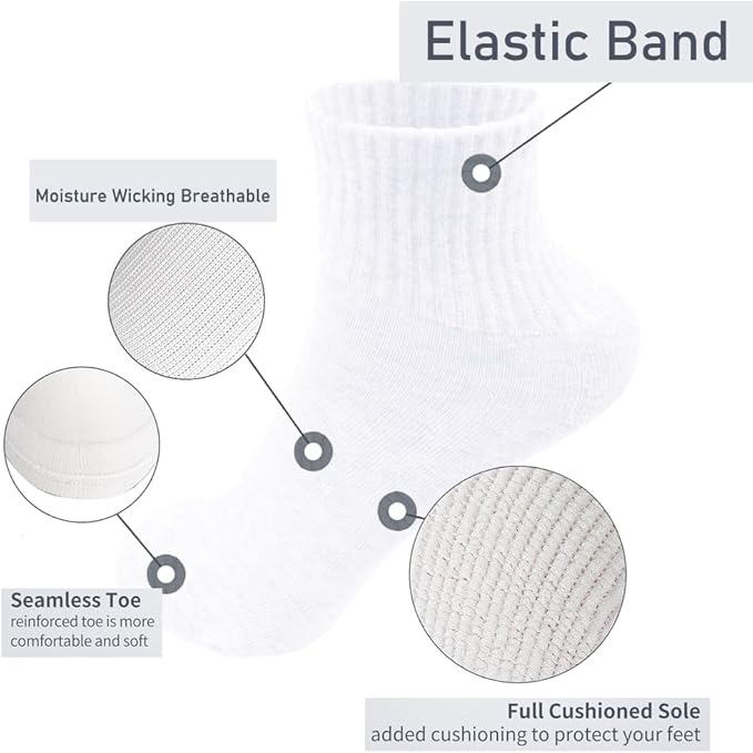 - COMFORTABLE: Full bottom with Cushion in these pure solid color Mid Quarter Ankle socks can absorb impact and reduce friction for great comfort.